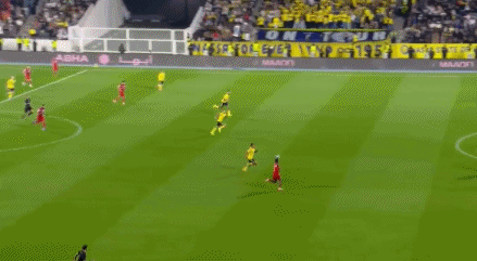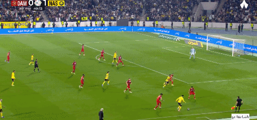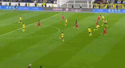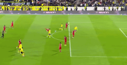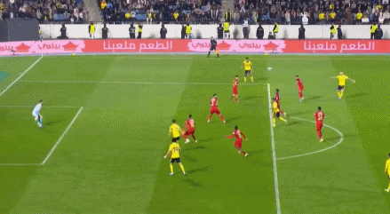 第5分钟,科曼右路突破,禁区内摆脱防守倒三角送到中路,加里卜巧妙扣球射门一气呵成,皮球钻入死角,利雅得胜利取得梦幻开局,1-0!