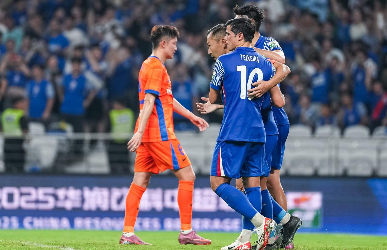 第64分钟陈晋一弧线球传中,徐皓阳头槌破门,申花3比2领先。第85分钟,薛庆浩出现低级失误,出球结果被泰山队在禁区线上断球,卡扎伊什维利顺势打门折射后得手,泰山队3比3扳平比分,卡扎伊什维利完成了帽子戏法。最终两队战成了3比3,申花仅得1分落后榜首成都蓉城3分。谁会想到近两轮的比赛让原本胶着的争冠局势瞬间变得明朗了,成都蓉城突然杀出,领先第二名海港2分,长时间占据榜首的申花现在落后榜首3分。